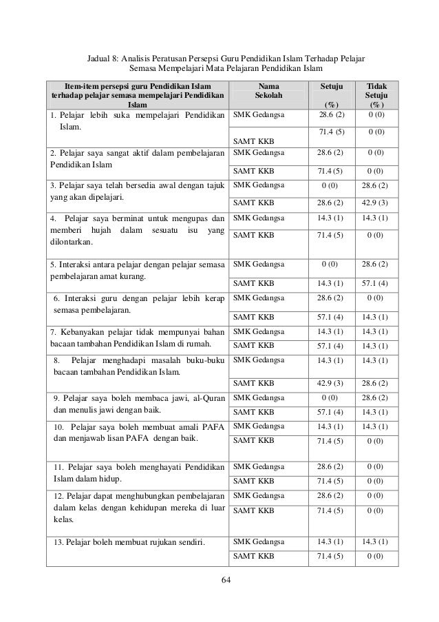 231 6214 Suka membaca dan mengambil tahu berkaitan Pendidikan Islam 232 6215 Kesan mata pelajaran. Tulungagung 06 Mei 2014 Pembimbing Indah Khomsiyah SAg MPd. Antara dapatan awal kepada perlaksanaan aktiviti dakwah di sekolah menengah kebangsaan dalam pembentukan akhak pelajar seperti Tadarus al-Quran Kem bestari solat dan kelas fardhu Ain.