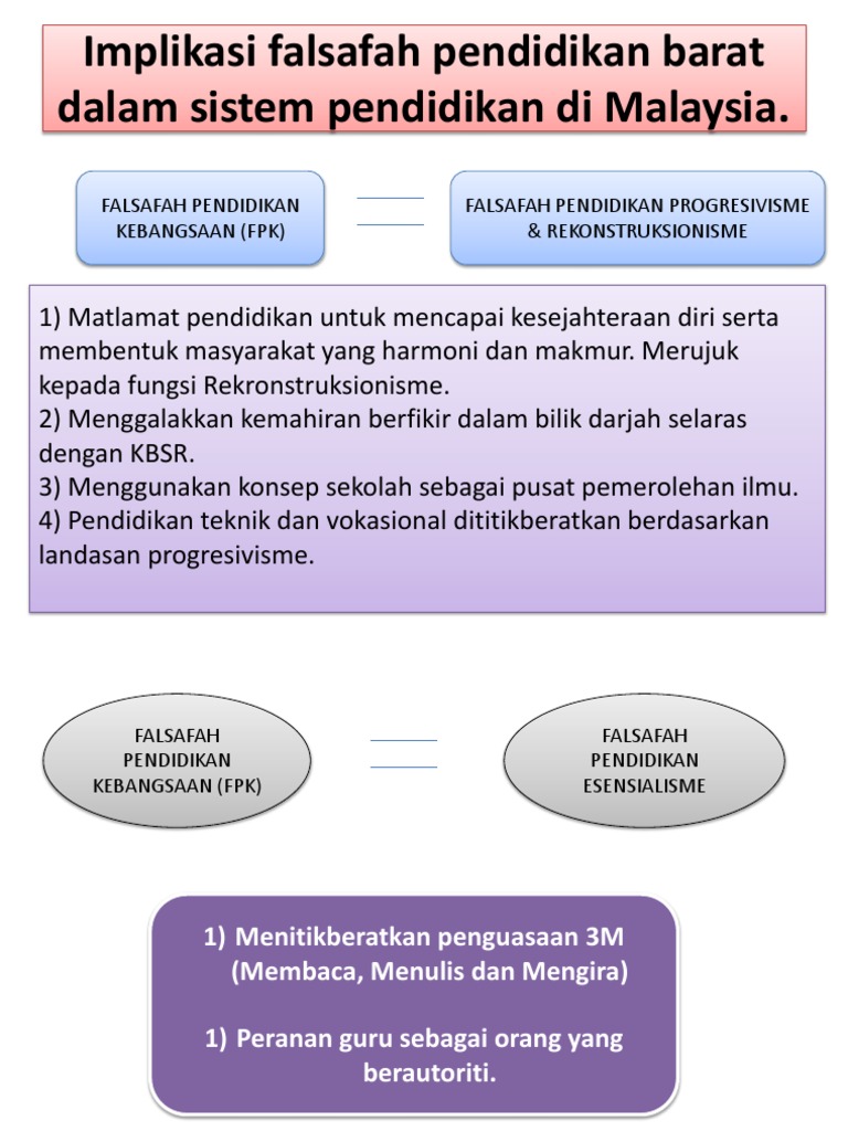 Falsafah pendidikan guru berperanan untuk melahirkan guru yang berkualiti dari segi sosial. 20022019 IMPLIKASI FALSAFAH BARAT KE ATAS PENDIDIKAN DI MALAYSIA -PARENNIALISME- Menurut Mok Soon Sang 2010 sama seperti falsafah essensialisme falsafah Perennialisme percaya bahawa tujuan utama pendidikan adalah untuk parennialisme juga mempunyai matlamat untuk menyatupadukan mengajar nilai dan pengetahuan yang rakyat dan dapat membekalkan. Oleh itu Falsafah Pendidikan Guru FPG telah diwujudkan bagi menentukan arah haluan asas dan sumber inspirasi kepada matlamat dan pendidikan guru.