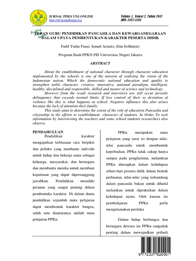 Hodrianiunimedacid Abstrak Penelitian ini bertujuan untuk mengetahui bagaimana peran guru Pendidikan Kewarganegaraan PKn. Dosen Program Studi Pendidikan Pancasila dan Kewarganegaraan PPKn. Objek analisis adalah guru.