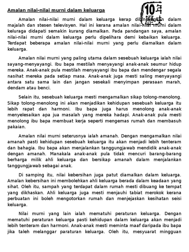 Amalan Nilai Nilai Murni Dalam Keluarga