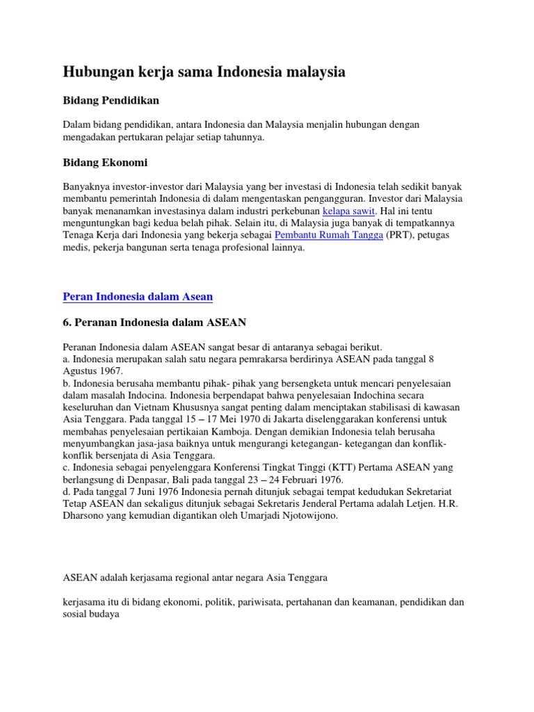 Hubungan Kerja Sama Indonesia Malaysia