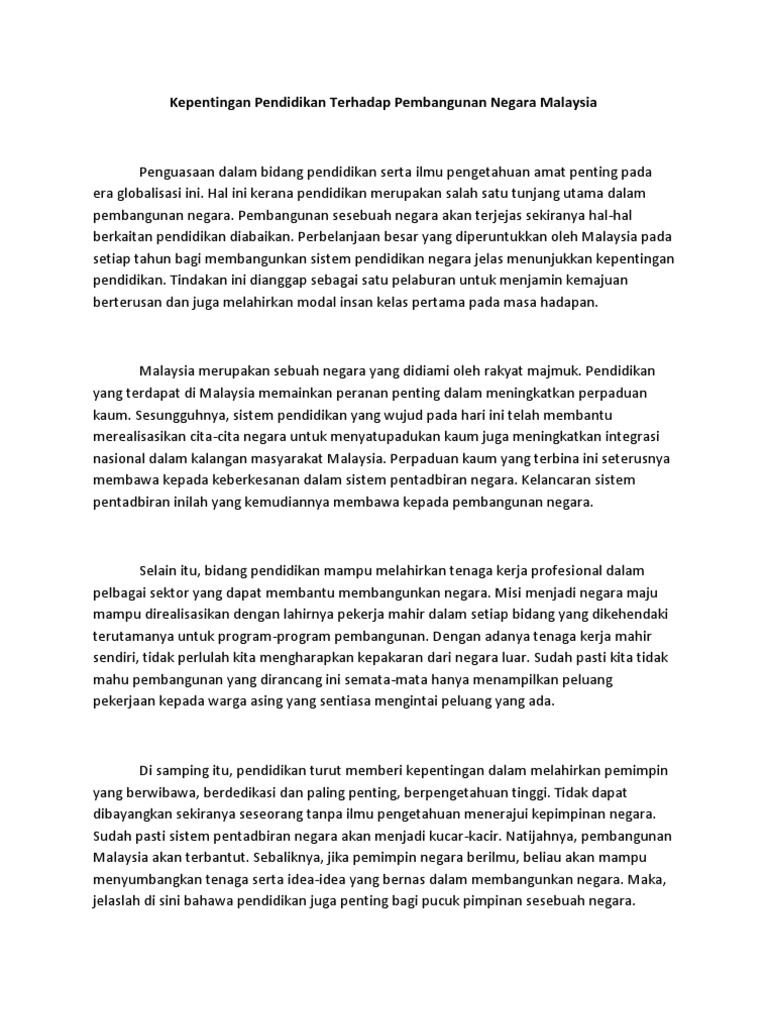 Kepentingan Pendidikan Terhadap Pembangunan Negara Malaysia