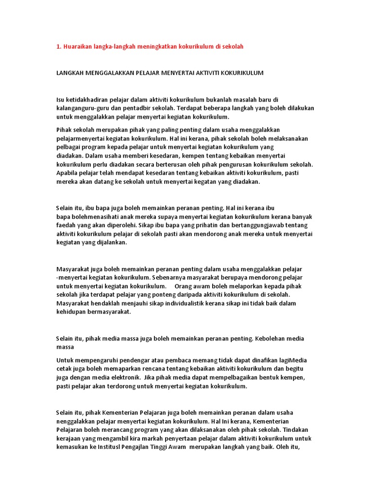 Karangan Langkah Menggalakkan Aktiviti Kokurikulum